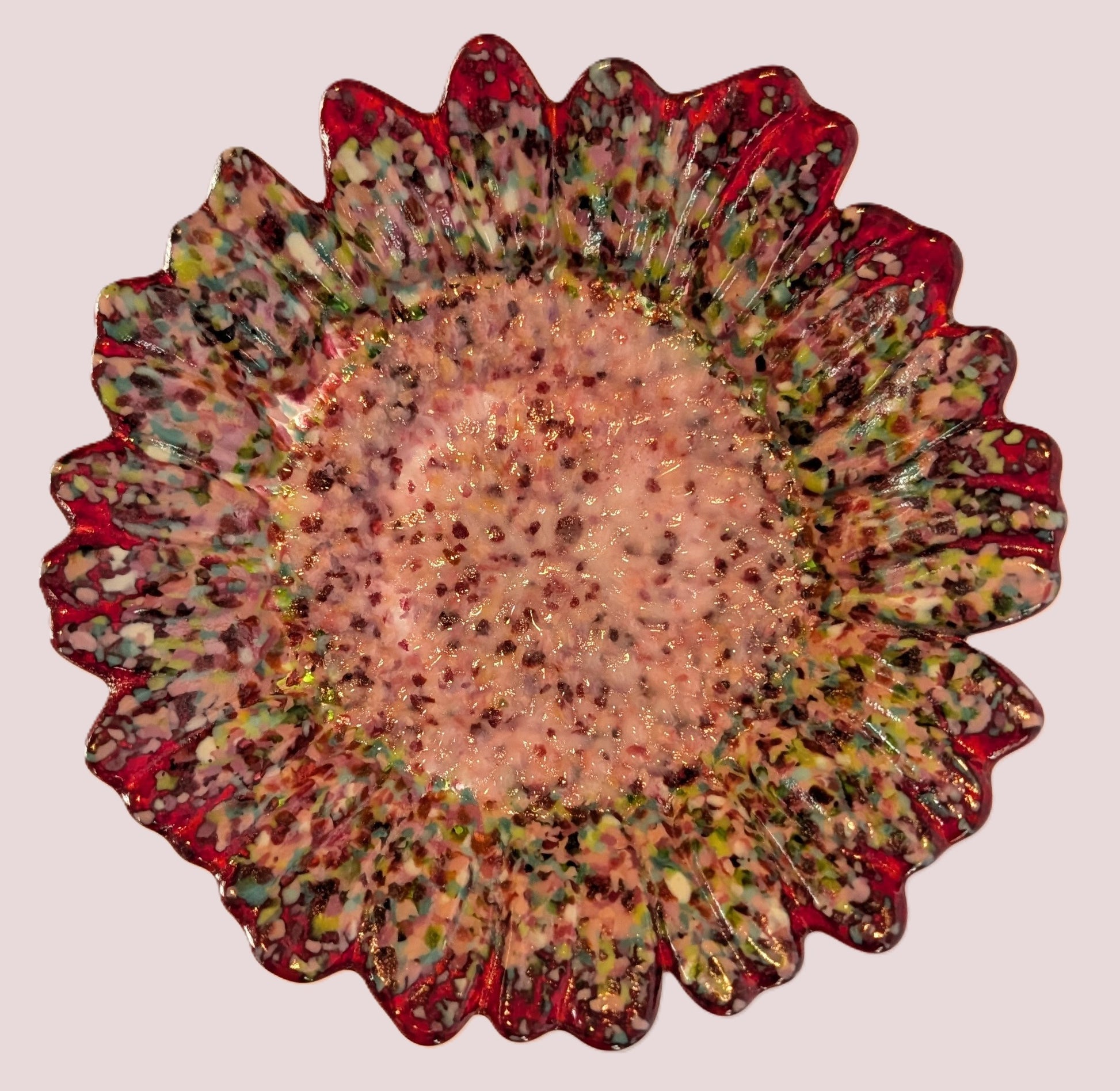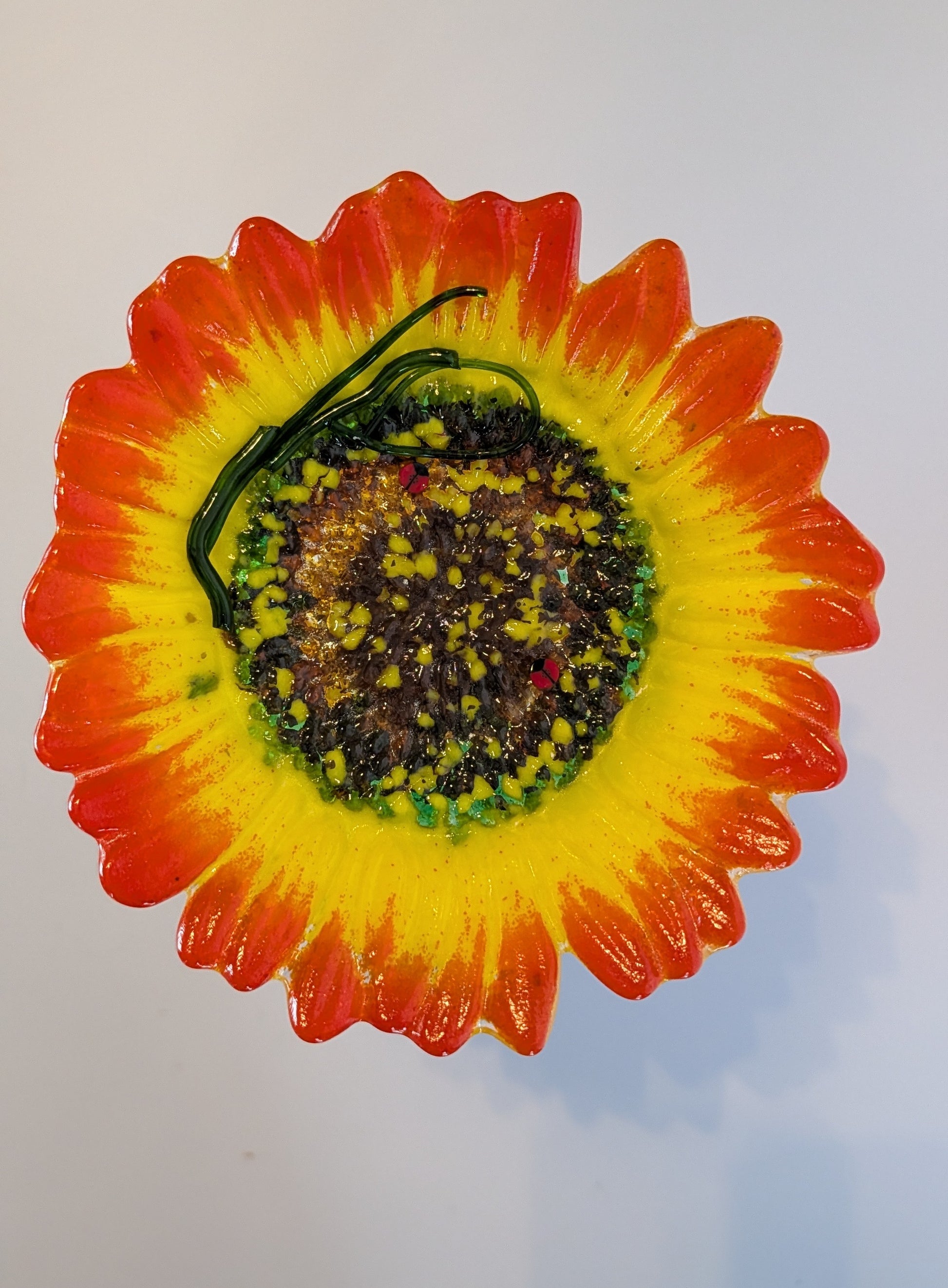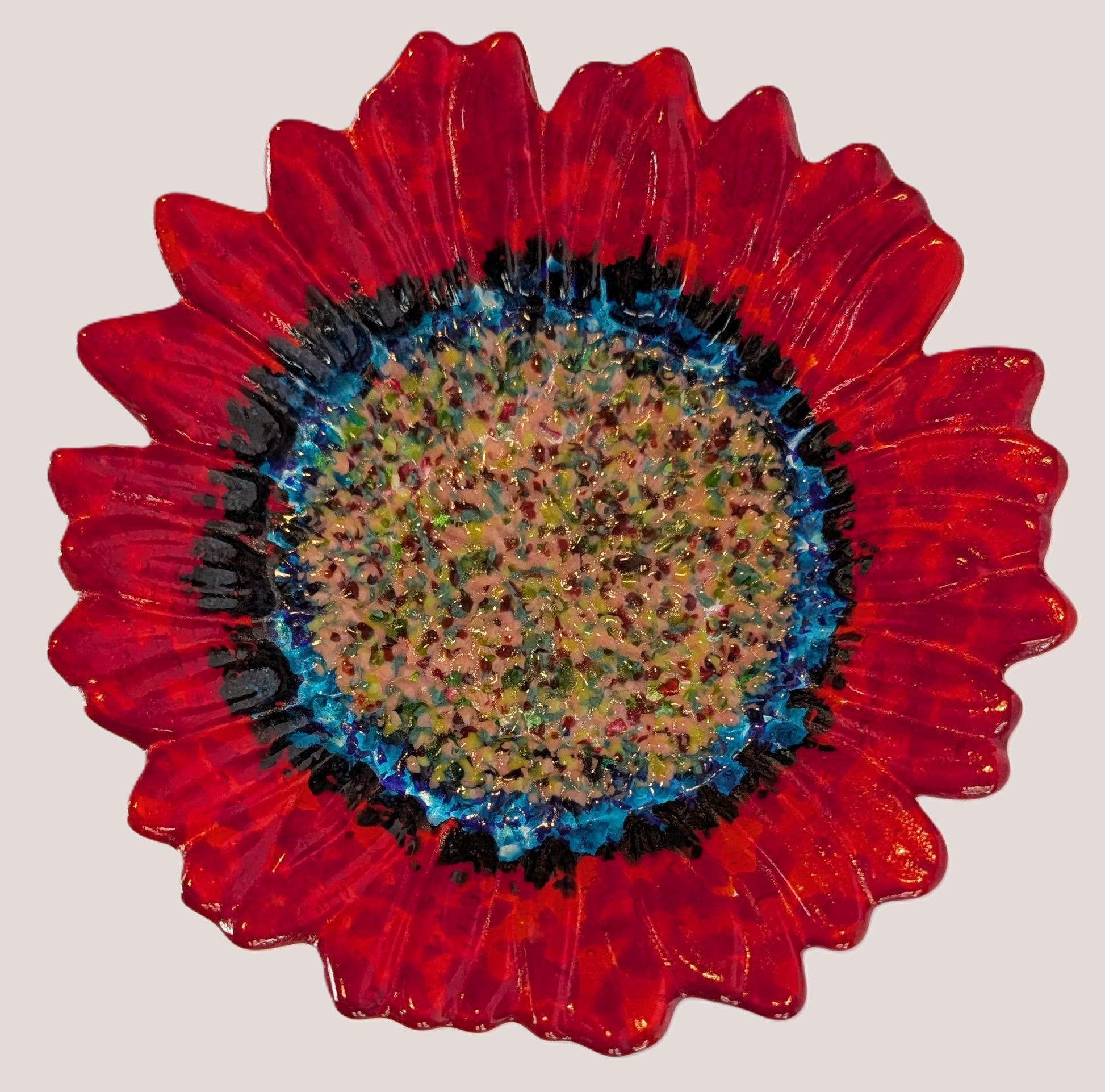 Hand-cast and kiln-fired, these exquisite 6" art-glass sunflower bowls are crafted one at a time—each one a unique bloom that captures the warmth and joy of summer. Their vibrant color, petal detail, and luminous finish make them as functional as they are beautiful.
